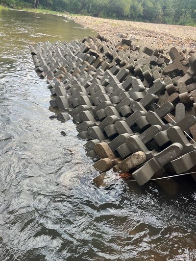 Excavation and preparation of A-jacksbase material, installation of new A-Jacks armoring units (including cabling existing and new units together), and back fill